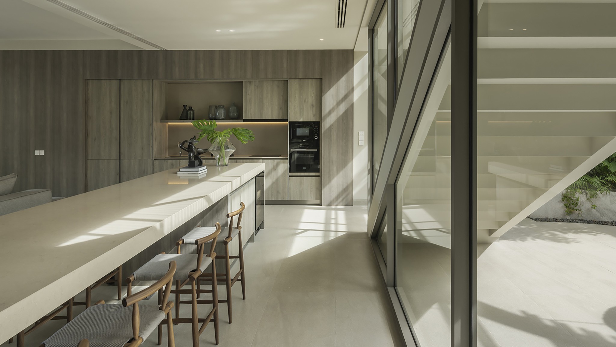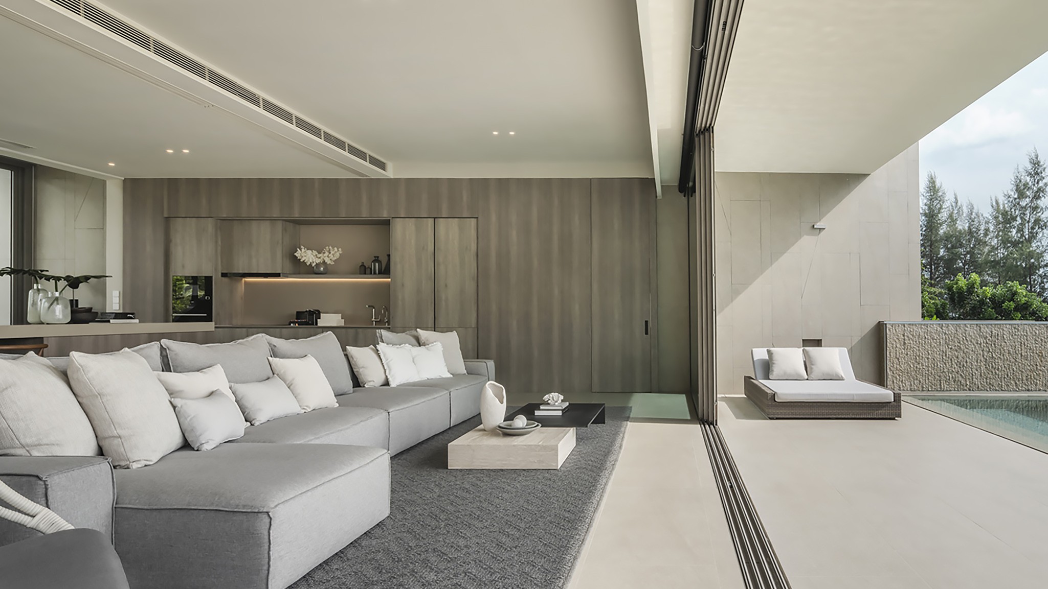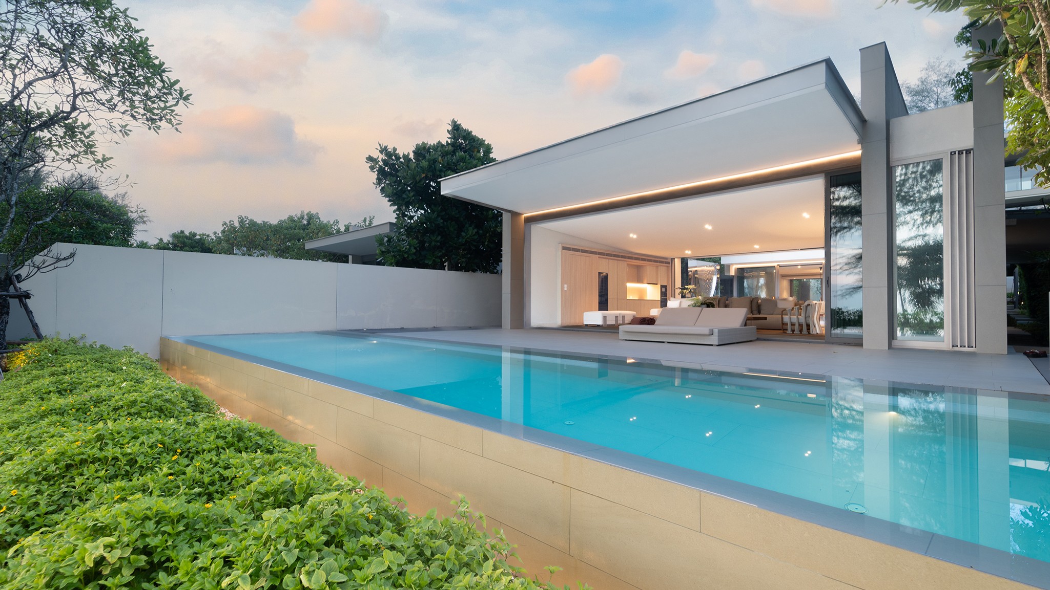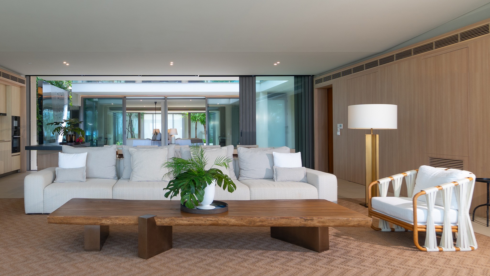 Designed with open living in mind, the villa features three spacious bedrooms with en-suite bathrooms, stylish interiors, and large glass doors that invite in the sea breeze. Each room is thoughtfully furnished for maximum comfort, while the open-plan living and dining areas flow overlooking the beach.